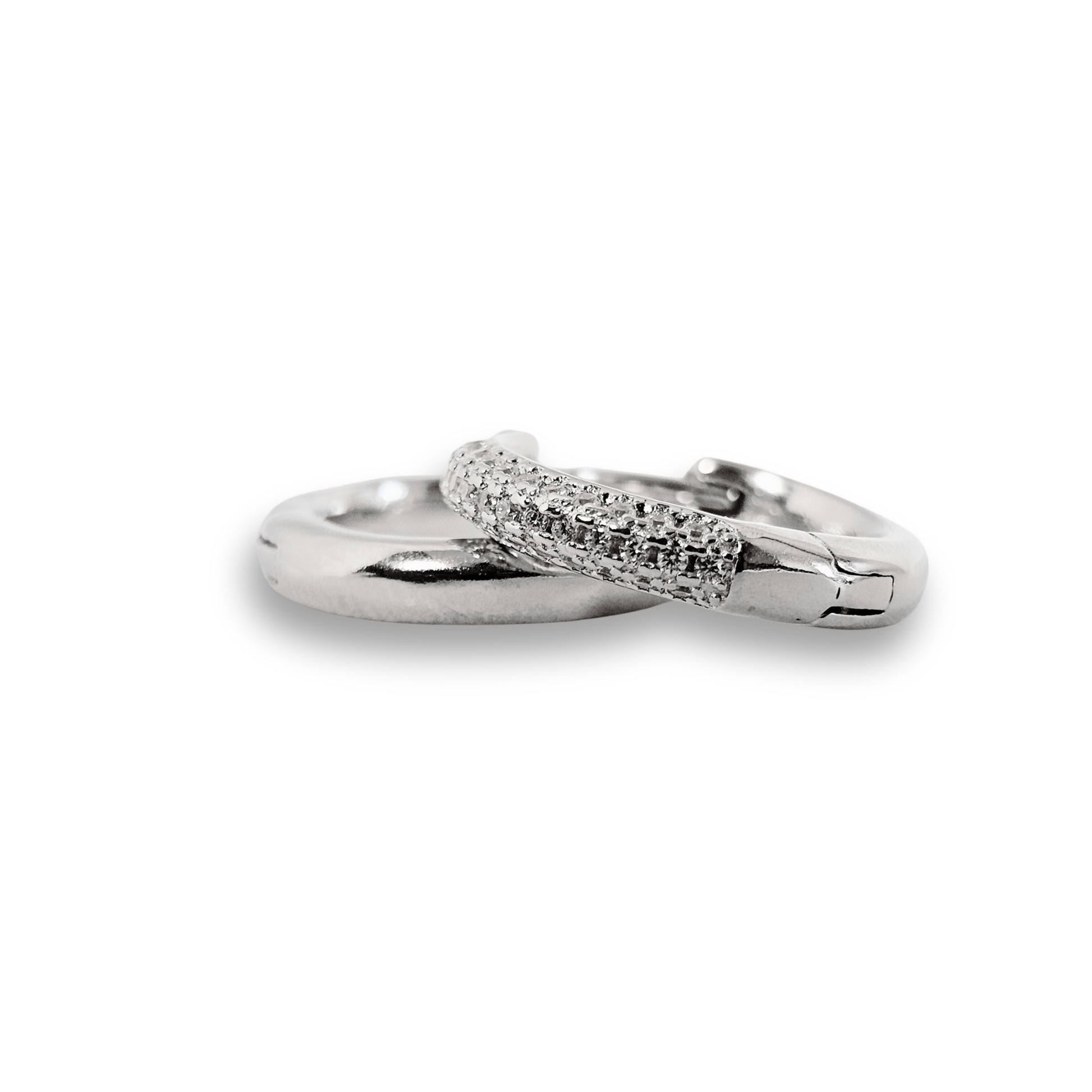 Sleek curved CZ hoop earrings crafted in 925 sterling silver. Lightweight and elegant, perfect for daily wear and minimal styling.