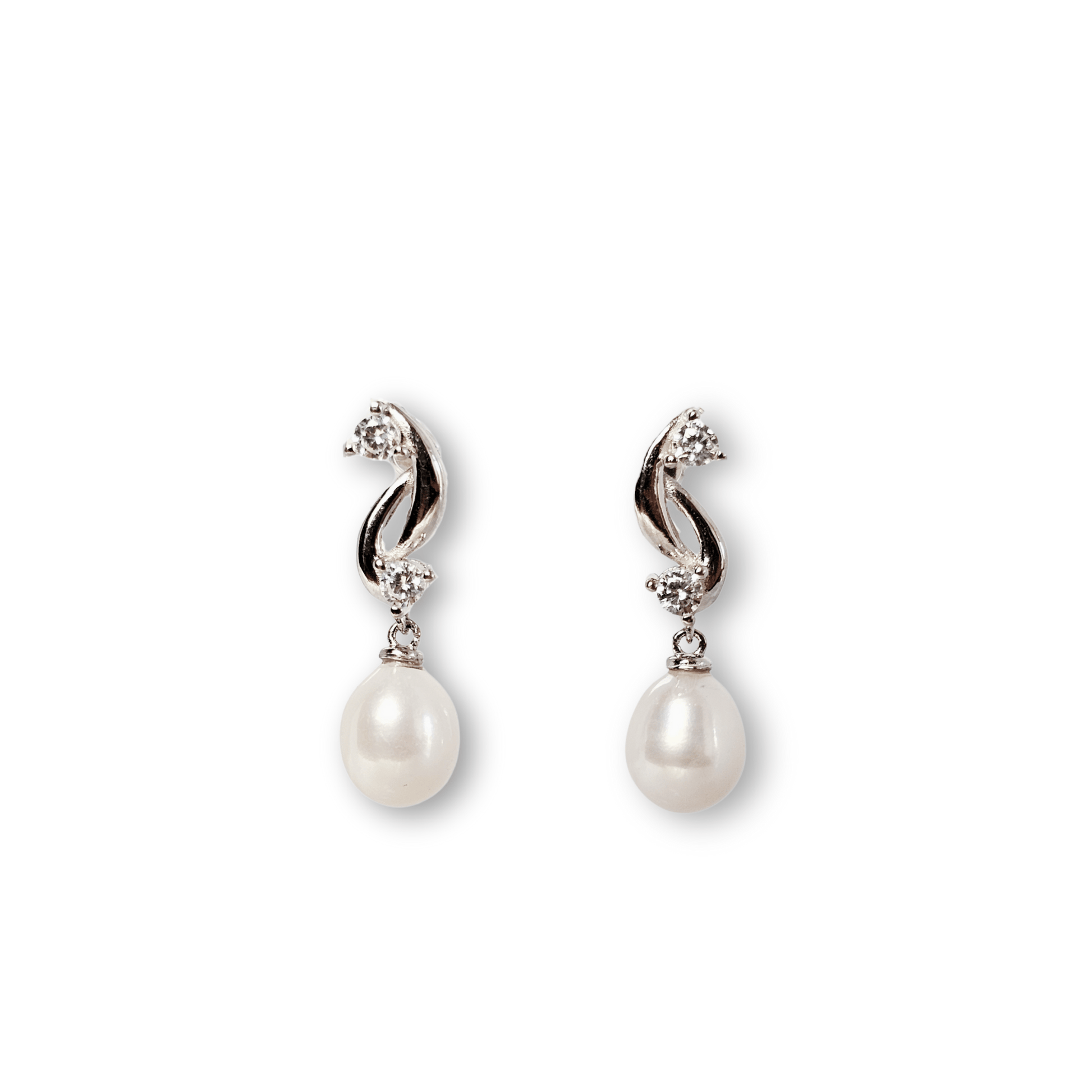 Pearl Twist CZ Silver Drop Earrings