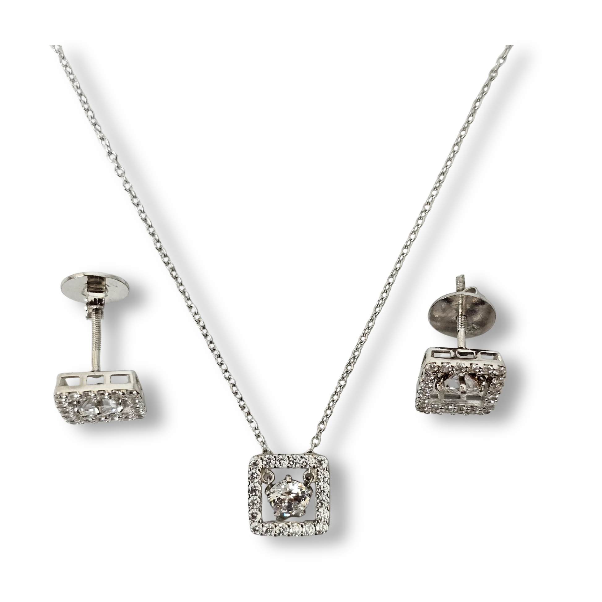 Square Halo CZ Pendant Set